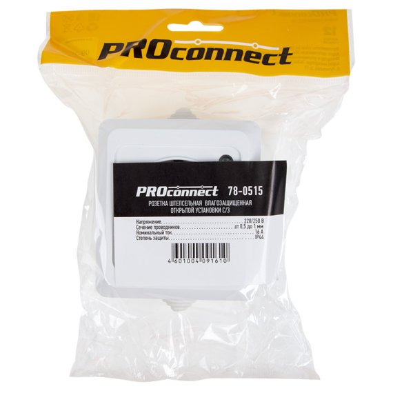 Розетка штепсельная влагозащищенная открытой установки c/з 16 А IP44 PROCONNECT