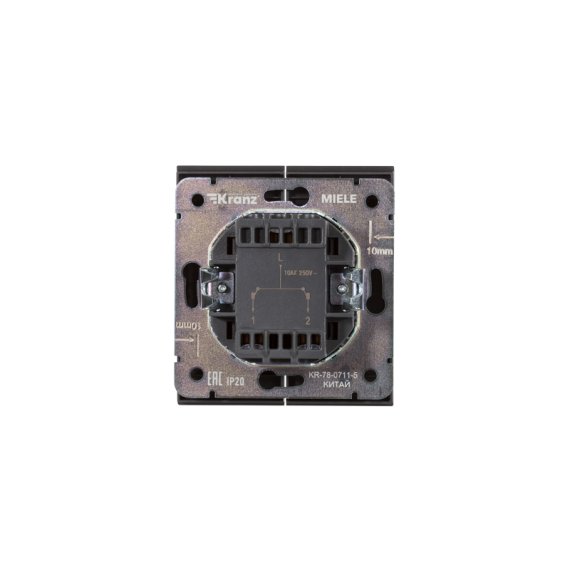 Механизм двухклавишного выключателя скрытой установки KRANZ предназначен для подключения к электрической сети внутри помещений. Используется для управления жалюзи.