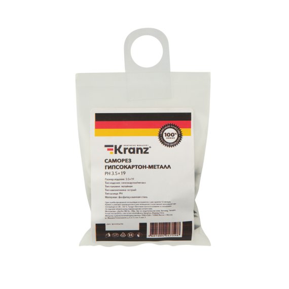 Саморез гипсокартон-дерево KRANZ 3.5х19, пакет (50 шт./уп.)