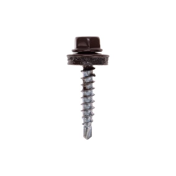 Шестигранная головка покрыта порошковой краской RAL 8017, что позволяет подобрать саморез под цвет крыши.