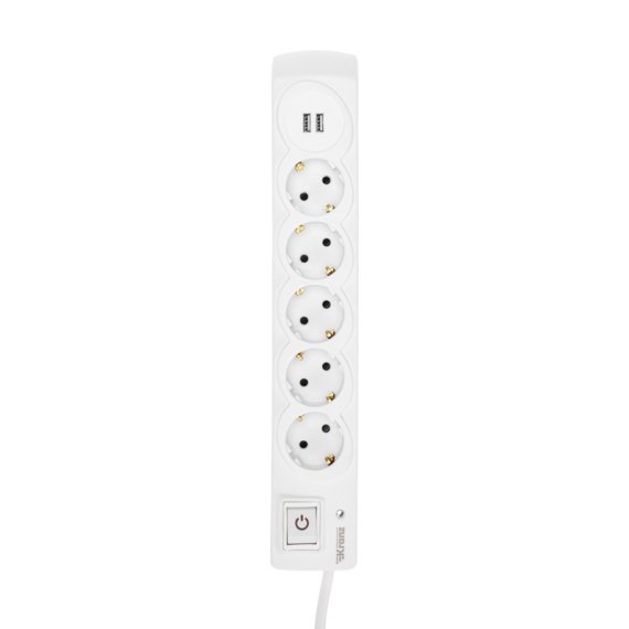 Фильтр сетевой 5 гнезд, 5м, 3х1,5мм?, с автовыкл, 2 USB, белый KRANZ