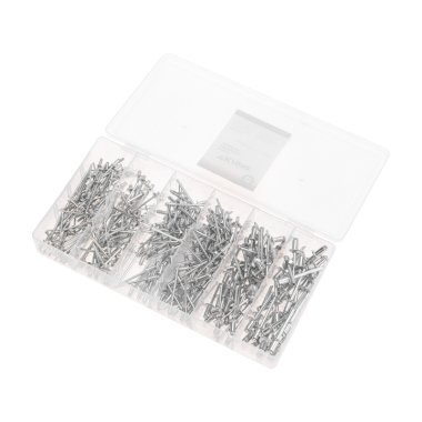 Набор состоит из 320 заклепок, которые поставляются в пластиковом органайзере, позволяющем не только удобно хранить изделия, но и быстро находить необходимый размер.