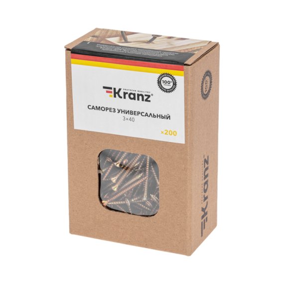 Саморез универсальный KRANZ 3х40, желтый цинк, короб (200 шт./уп.)