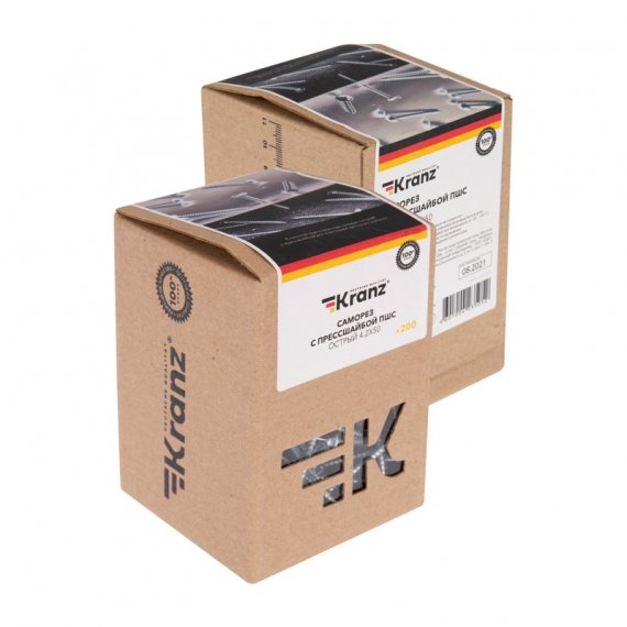 Саморез с прессшайбой KRANZ ПШС острый 4.2х50, короб (200 шт./уп.)