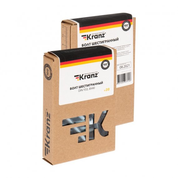 Болт шестигранный KRANZ DIN 933, 8х40, короб (20 шт./уп.)