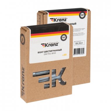 Болт шестигранный KRANZ DIN 933, 8х50, короб (20 шт./уп.)