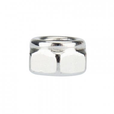 DIN 985 – гайка самоконтрящаяся с нейлоновым стопорным кольцом. Нейлоновое кольцо предотвращает самопроизвольное откручивание гайки и герметизирует соединение. Применяется в тех соединениях, где возможно самопроизвольное откручивание из-за вибрации (инструменты, станки и т. п.). Благодаря завальцованной полиамидной вставке (нейлон) сама себя фиксирует, при применении этих гаек шайбы не требуются.