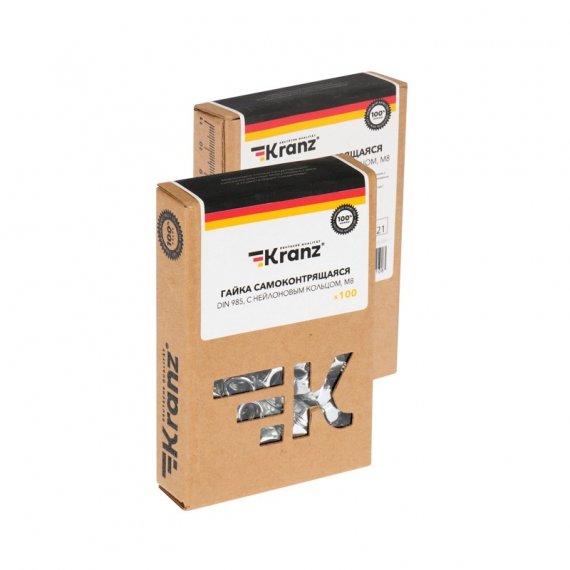 Гайка самоконтрящаяся KRANZ DIN 985, с нейлоновым кольцом, M8, короб (100 шт./уп.)