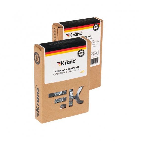 Гайка для шпильки KRANZ удлиненная М8, 1.25х13х24, короб (20 шт./уп.)