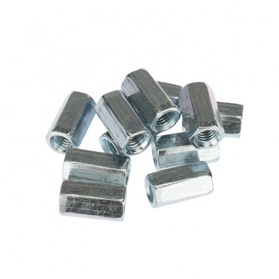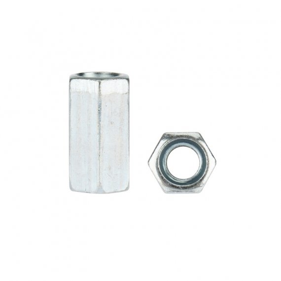 Гайка-втулка шестигранная удлиненная. Используются для удлинения, соединения резьбовых шпилек и штифтов соответствующего размера резьбы в машиностроении, приборостроении и прочих промышленных, производственных, строительных отраслях.