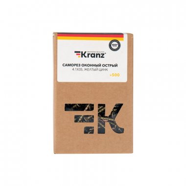 Саморез оконный KRANZ острый, 4.1х35, желтый цинк, короб (500 шт./уп.)