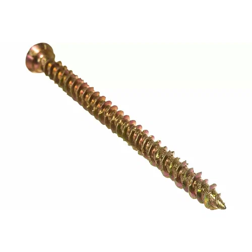 Шуруп по бетону 7,5х202мм, короб (100 шт/уп) KRANZ Шуруп по бетону 7,5х202 мм со шлицем типа TORX предназначен для крепления оконных и дверных коробок к основаниям из плотного материала (бетона, кирпича, природного камня). Шурупы изготовлены из стали и покрыты цинком, что делает их устойчивыми к коррозии и механическим повреждениям. Острый наконечник легко проходит слабые основания (газобетон, пластик, древесину) без предварительного сверления, однако для монтажа в бетон, кирпич или природный камень необходимо предварительное сверление монтажного отверстия. Двухзаходная самонарезающая резьба позволяет быстрее ввинчивать шуруп в материал с меньшими усилиями. Потайная головка полностью погружается в материал. Поставляются в крафтовой коробке в количестве 100 штук.
