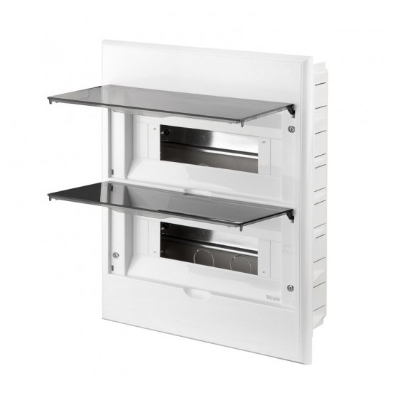 Бокс пластиковый ЩРВ-П IP41 предназначен для установки модульных устройств при распределении электроэнергии до 400 В в квартирах, офисах, жилых, муниципальных и технических помещениях. Корпус состоит из лицевой и несущей частей, выполненных из надежных и долговечных материалов: прозрачная дверца изготовлена из поликарбоната (позволяет видеть состояние автоматов без необходимости в открывании щитка), белая дверца – из ударопрочного ABS-пластика. Внутренняя часть корпуса с увеличенным пространством удобна для монтажа оборудования. Изделие выполнено в соответствии с нормами пожарной безопасности и изготовлено из материалов, которые не поддерживают горение. Современный дизайн позволяет устанавливать распределительный щиток в любое пространство. Внутри установлена стальная DIN-рейка для крепления на нее различных модульных устройств, в комплектацию также входит набор винтов для крепления. Произведено в Европе в соответствии со всеми стандартами безопасности (ГОСТ 14254 - 2015 и IEC 60529:2013).
