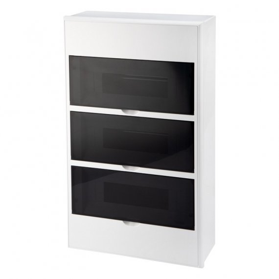 Бокс пластиковый ЩРН-П IP41 предназначен для установки модульных устройств при распределении электроэнергии до 400 В в квартирах, офисах, жилых, муниципальных и технических помещениях. Корпус состоит из лицевой и несущей частей, выполненных из надежных и долговечных материалов: прозрачная дверца изготовлена из поликарбоната (позволяет видеть состояние автоматов без необходимости в открывании щитка), белая дверца – из ударопрочного ABS-пластика. Внутренняя часть корпуса с увеличенным пространством удобна для монтажа оборудования. Изделие выполнено в соответствии с нормами пожарной безопасности и изготовлено из материалов, которые не поддерживают горение. Современный дизайн позволяет устанавливать распределительный щиток в любое пространство. Внутри установлена стальная DIN-рейка для крепления на нее различных модульных устройств, в комплектацию также входит набор винтов для крепления. Произведено в Европе в соответствии со всеми стандартами безопасности (ГОСТ 14254 - 2015 и IEC 60529:2013).