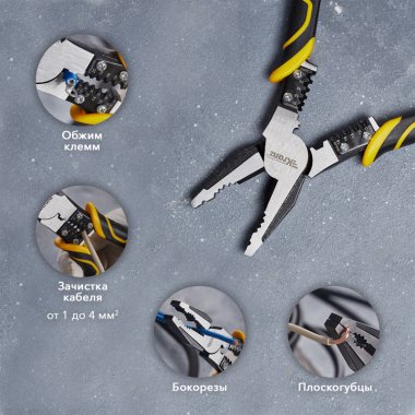Многофункциональные универсальные плоскогубцы – это инструмент на все случаи жизни включающий в себя: плоскогубцы, бокорезы, инструмент для зачистки кабеля, инструмент для обжима клемм.