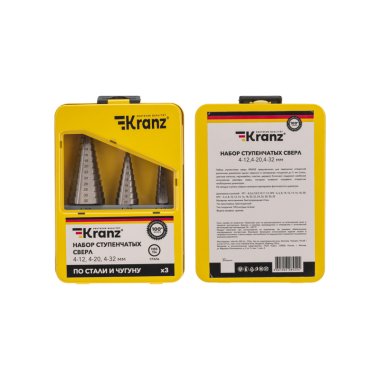 Kranz KR-12-6620 Набор ступенчатых сверл, 4-12,4-20,4-32мм, HSS-TiN, ТИТАН
