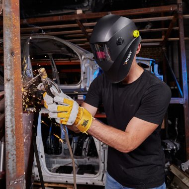 Маска сварщика с автоматическим светофильтром «Хамелеон» АСФ 400 KRANZ – это универсальная маска с автоматическим светофильтром, с возможностью регулировки степени затемнения. Предназначена для защиты головы, горла и органов зрения сварщика при проведении работ от ИК/УФ-излучений, искр и брызг металла. Затемнение в маске происходит автоматически до степени 9-13 DIN. В светлом состоянии маска 4 DIN. Есть возможность отключения автоматического затемнения для использования в режиме шлифовки/резки.