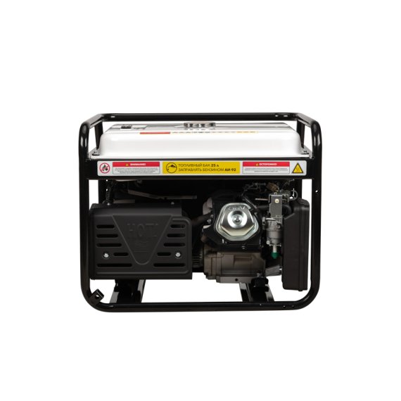 Увеличенный бензобак 25 л гарантирует 7-8 часов работы. Стальная рама диаметром 32 мм для установки ручек и колес защищает внутренние детали от повреждений. Система поддержания параметров выходного напряжения (AVR) обеспечивает стабильное питание.