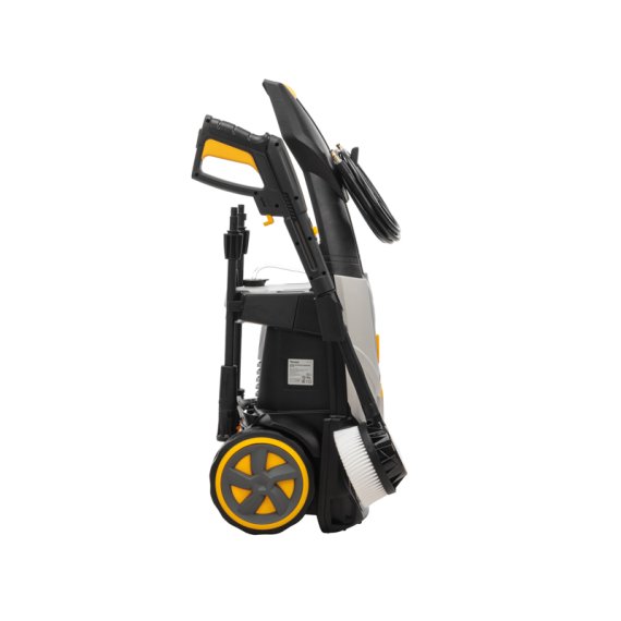 Мойка отличается мобильностью благодаря кабелю длиной 5 м, удобной рукоятке и колесам. Шланг длиной 5 м обеспечивает удобство использования.