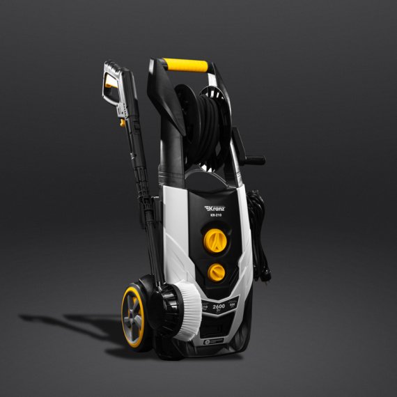 Мойка высокого давления KR-210 KRANZ Мойка высокого давления KR-210 эффективно устраняет различные виды загрязнений при помощи струи воды под высоким давлением. Предназначена для бытового использования. Мощный двигатель 2600 Вт обеспечивает давление до 210 бар и производительность до 500 л/ч. Алюминиевая помпа гарантирует надежность и стабильное давление. Опция блокировки рычага пистолета исключает случайную подачу воды. При перегреве мотор отключается автоматически, что предотвращает его поломку. Фильтр тонкой очистки защищает компоненты мойки и очищаемую поверхность от повреждения мельчайшими твердыми частицами. Функция самостоятельного забора воды из емкости позволяет использовать мойку в местах без водопровода. Регулируемое сопло и сменные быстросъемные насадки с разными углами распыления (0, 15, 25, 40) позволяют изменять интенсивность струи, а также наносить моющие средства. Пеногенератор встроен в корпус мойки. Подача пены плавно регулируется поворотной рукояткой. Система полной остановки выключает двигатель при отпускании клавиши пистолета, что экономит энергию и увеличивает ресурс. Мойка отличается мобильностью благодаря кабелю длиной 5 м, удобной рукоятке и колесам. Усиленный армированный шланг длиной 8 м обеспечивает удобство использования. На корпусе мойки располагается держатель пистолета и распылителя, а также встроенный крюк для крепления провода. Предусмотрены быстросъемные коннекторы фиксации шланга и насадок.