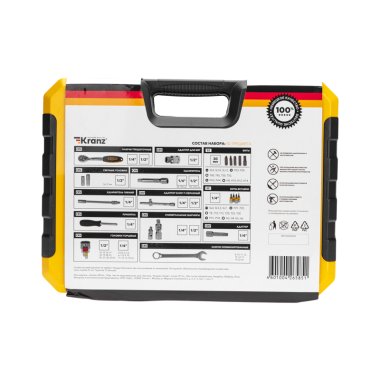 Набор инструментов KRANZ 1/2 и 1/4 дюйма, CrV, состоит из 82 предметов в пластиковом кейсе и предназначен для выполнения различных слесарно-монтажных работ.