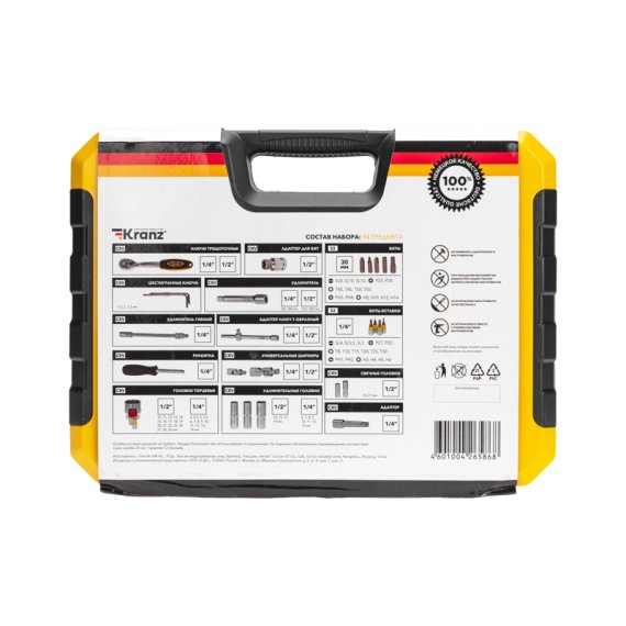 Kranz KR-66-6694 Набор инструментов, 1/2, 1/4, CrV, пластиковый кейс