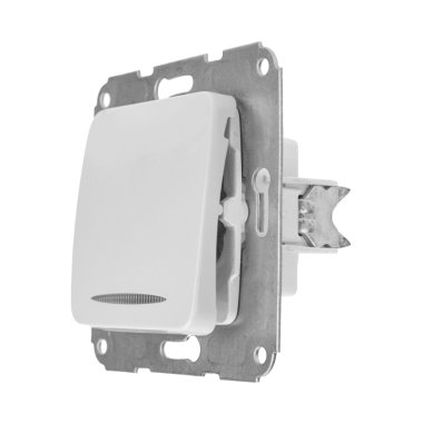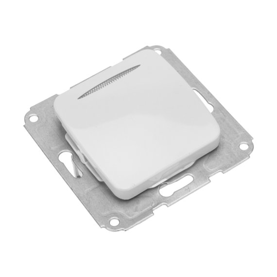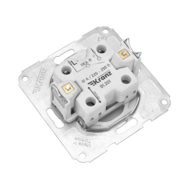 Механизм одноклавишного выключателя KRANZ – серия DEA, скрытой установки, с подсветкой. Предназначен для подключения к электрической сети внутри помещений для включения и выключения света.