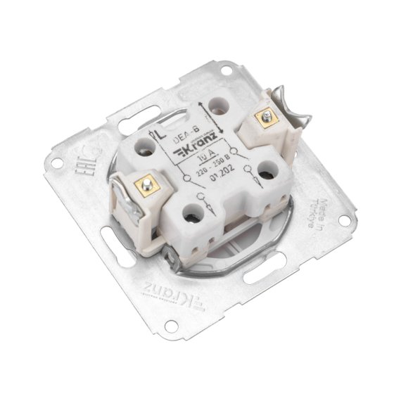 Механизм двухклавишного выключателя KRANZ – серия DEA, скрытой установки, с подсветкой. Выключатель предназначен для включения и отключения одного или двух однофазных потребителей в электрических сетях переменного тока.