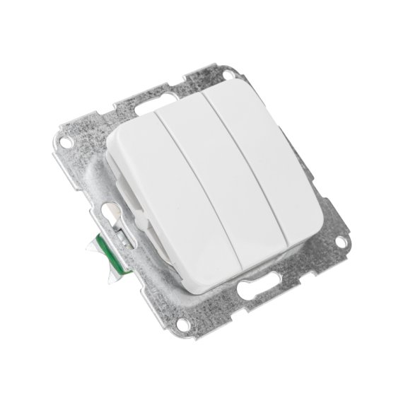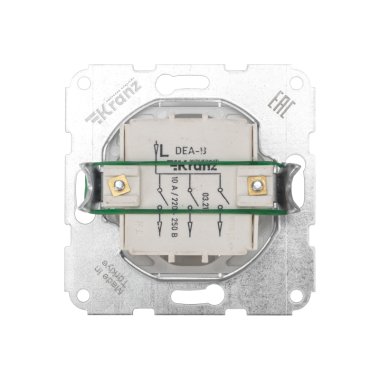 Механизм трехклавишного выключателя KRANZ – серия DEA, скрытой установки, с подсветкой. Выключатель предназначен для включения и отключения одного или двух однофазных потребителей в электрических сетях переменного тока.