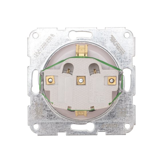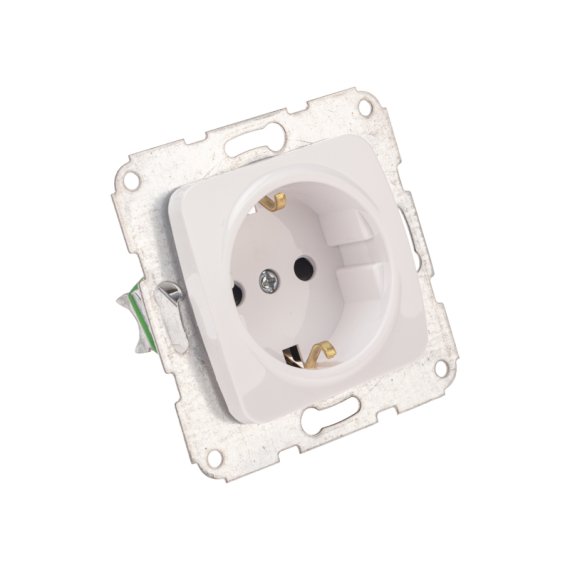 Механизм одинарной розетки KRANZ – серия DEA, скрытой установки. Предназначен для использования в квартирах, офисах, в загородном строительстве при подключении электроприборов к силовой электрической сети.