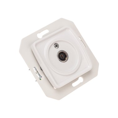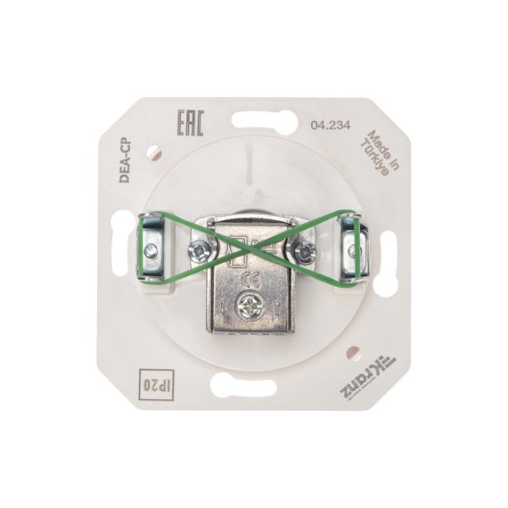 Механизм телевизионной розетки проходного типа KRANZ – серия DEA, скрытой установки. Предназначен для подключения телевизионных приемников к коаксиальной кабельной сети.
