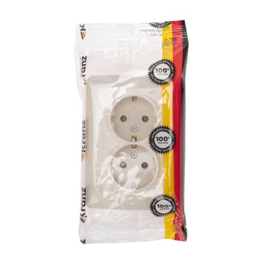 Розетка двойная KRANZ – серия DEA, скрытой установки. Предназначен для использования в квартирах, офисах, в загородном строительстве при подключении электроприборов к силовой электрической сети.