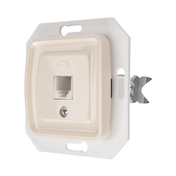 Механизм телефонной розетки KRANZ – серия DEA, скрытой установки. Предназначен для подключения устройств абонентской телефонной техники, устанавливаемых в жилых, общественных и промышленных помещениях, к линиям телефонной сети посредством кабеля RJ11 CAT3.