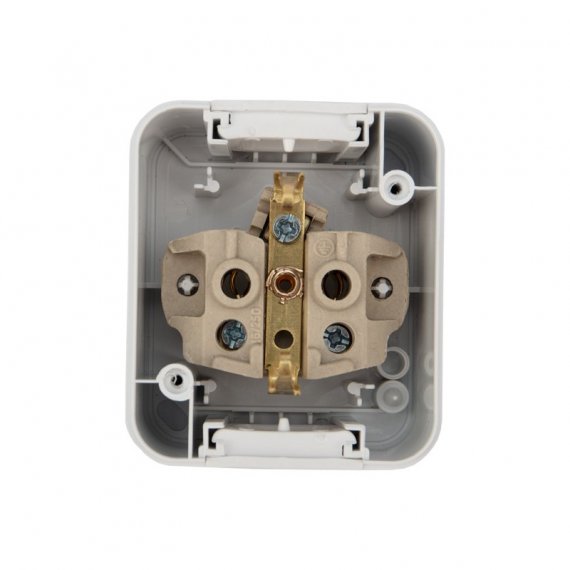 Защитная крышка на лицевой поверхности защищает розетку от попадания брызг воды. Отлично подойдет для дачи, ванной комнаты, бассейна и улицы, при наличии навеса, защищающего от прямого попадания влаги.