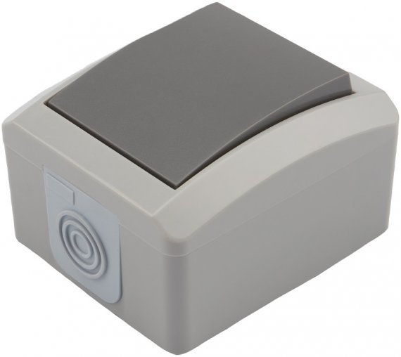 Переключатель проходной INDUSTRIAL IP54, о/у, серый KRANZ