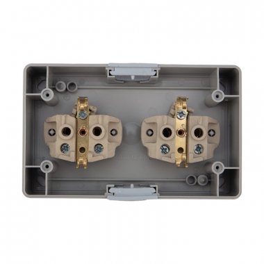 Накладной горизонтальный блок из двух розеток KRANZ предназначен для организации электроснабжения не только в сухом помещении, но и во влажной и пыльной среде.