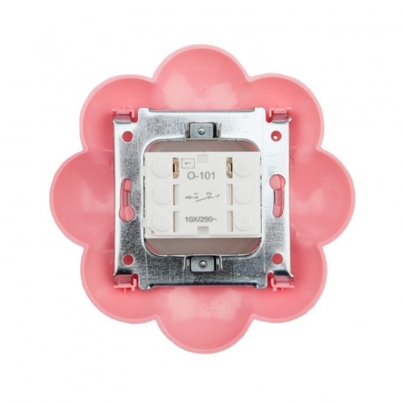 Выключатель одноклавишный KRANZ HAPPY Цветок скрытой установки, белый/розовый