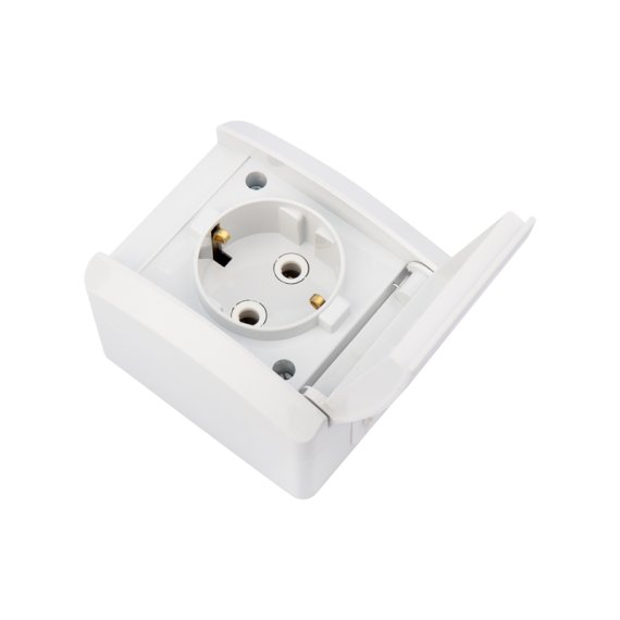 Защитная крышка на лицевой поверхности защищает розетку от попадания брызг воды. Отлично подойдет для дачи, ванной комнаты, бассейна и улицы, при наличии навеса, защищающего от прямого попадания влаги.