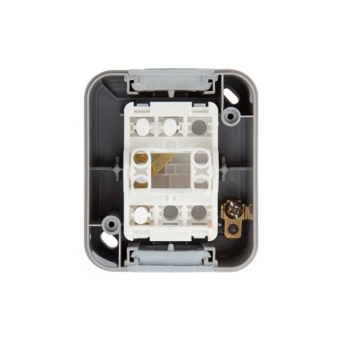 Защитная крышка на лицевой поверхности защищает выключатель от попадания брызг воды. Отлично подойдет для дачи, ванной комнаты, бассейна и улицы, при наличии навеса, защищающего от прямого попадания влаги.