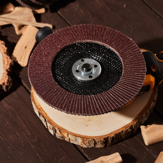 Лепестковый торцевой круг применяется совместно с ручными угловыми шлифовальными машинами (болгарками) соответствующего диаметра.
