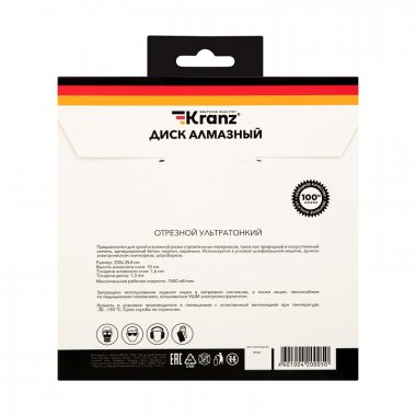 Kranz KR-90-0144 Диск алмазный отрезной ультратонкий 200x25.4/22.2x1.8x10 мм