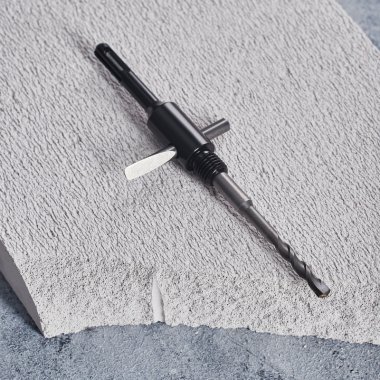 Инструмент выполнен из высококачественной стали и оснащен системой быстрой фиксации, которая обеспечивает надежное крепление центрирующего сверла.