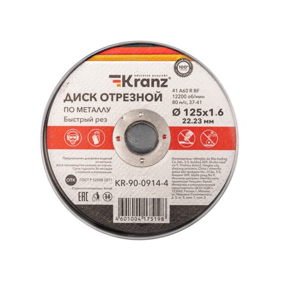 Отрезной диск KRANZ используется для обрезки и обработки металлических изделий, таких как листы, трубы, профили, проволока и т.д. При контакте с диском материалы не разрушаются и сохраняют свои свойства.