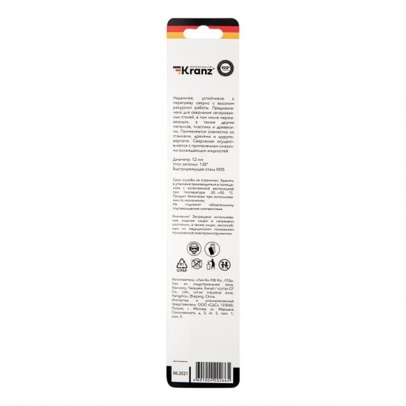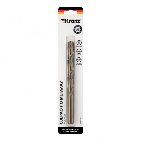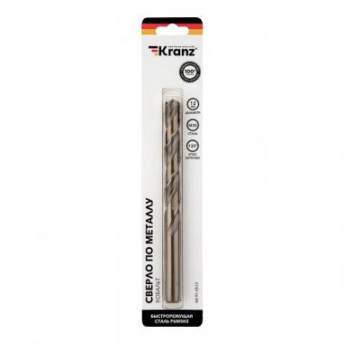 Сверло по металлу 12х151х101 мм «Кобальт» (сталь HSS-Co 5 % M35 P6M5K5) (1 шт. в блистере) DIN 338 KRANZ