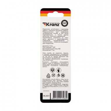 Сверло по металлу 5х86х52 мм «Стандарт+» (P6M5 M-2) (1 шт. в блистере) DIN 338 Kranz