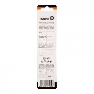 Купить по низким ценам Kranz KR-91-0570 Сверло по металлу 8,0х117х75 мм HSS