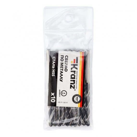 Сверло по металлу 4,0х75х43 мм HSS (10 шт. в упаковке) DIN 338 Kranz