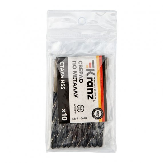Сверло по металлу 5,5х93х57 мм HSS (10 шт. в упаковке) DIN 338 Kranz