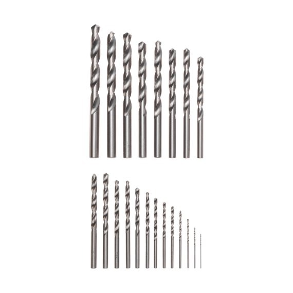Комплект содержит сверла часто используемых диаметров: 1-1,5-2-2,5-3-3,2-3,5-4-4,5-4,8-5-5,5-6-6,5-7-7,5-8-8,5-9-9,5-10 мм.