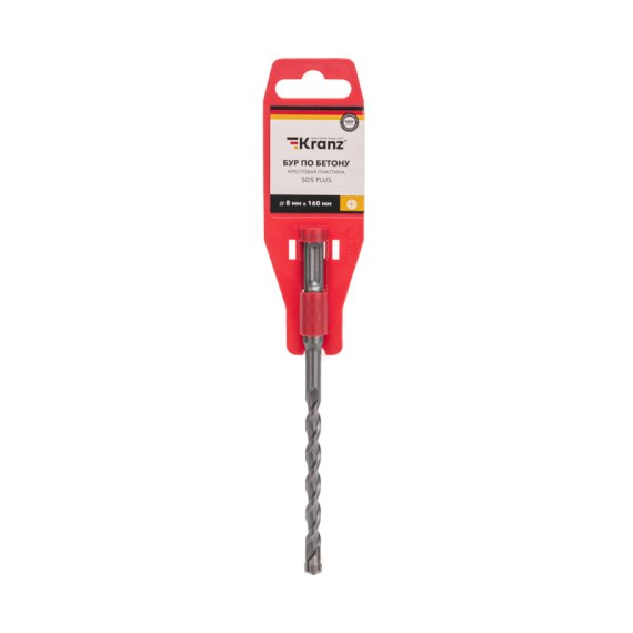 Бур по бетону 10x260x200мм, крестовая пластина, SDS PLUS KRANZ Бур по бетону с крестообразным наконечником KRANZ предназначен для сверления и бурения отверстий в слабоармированном бетоне, граните, кирпичной кладке и камне. Используется при проведении строительных и ремонтных работ. Бур применяется совместно с перфораторами, оснащенными креплением SDS PLUS, которое является стандартным для большинства электроинструментов. Благодаря конструкции со стабилизирующей спиралью, бур сохраняет точное положение в процессе сверления и обеспечивает равномерное распределение ударной нагрузки. Крестовая вставка из карбидного сплава (YG8C) с 4 гранями, расположенная на конце бура, способствует эффективному и быстрому входу в материал, что увеличивает долговечность бура и снижет вероятность его поломки при попадании в арматуру. Материал изготовления тела бура – инструментальная легированная сталь (40cr).